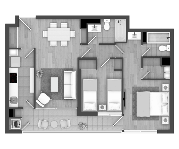 - 2 dormitorios