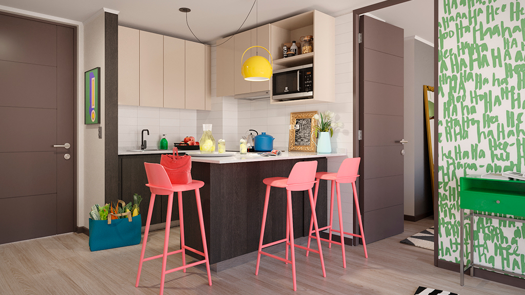 Nos inspira quienes vivirán cada espacio. Incluyendo en el diseño, optimización de los espacios de guardado; refrigerador horizontal bajo y modernas terminaciones.