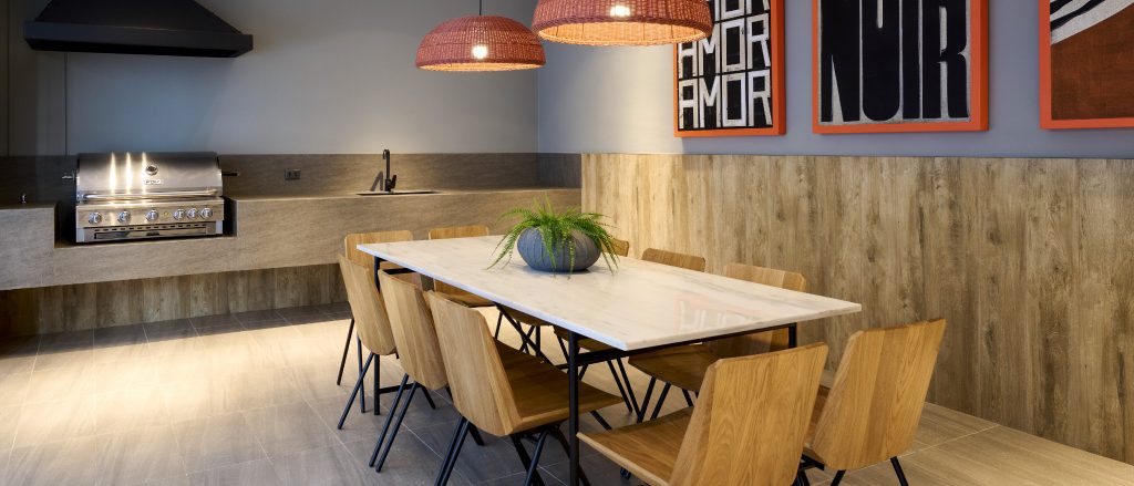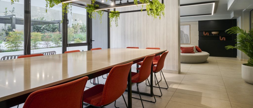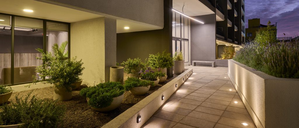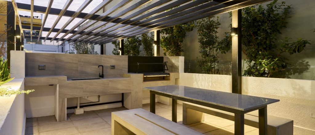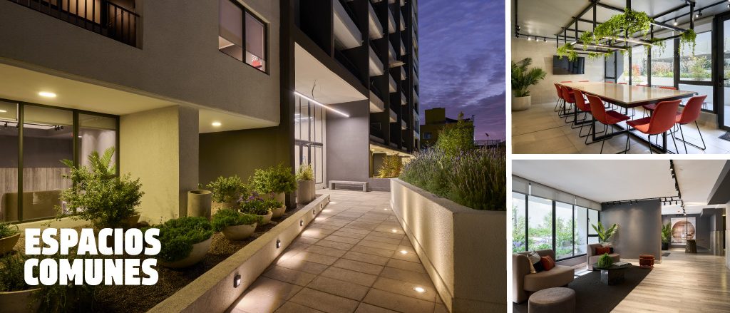 Una propuesta moderna para disfrutar de los espacios exteriores de tu depto. Hall de acceso, salón gourmet, sala co-work, paseo interior con sector de bancas y jardines.